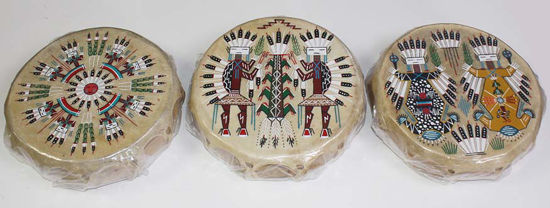 Hand made of Pine Wood and Rawhide Then Painted by Navajo Sandpainters. Patterns will vary; CALL FOR SELECTION